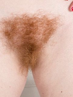 Hairy girl Thelma Sleaze works out her pussy