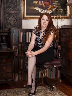 Milada strips naked on her tan chair looking sexy